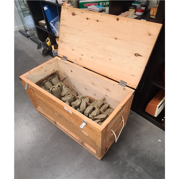 1950'S NOS WOOD MILITARY CRATE W/FIELD DRESSING BANDAGES