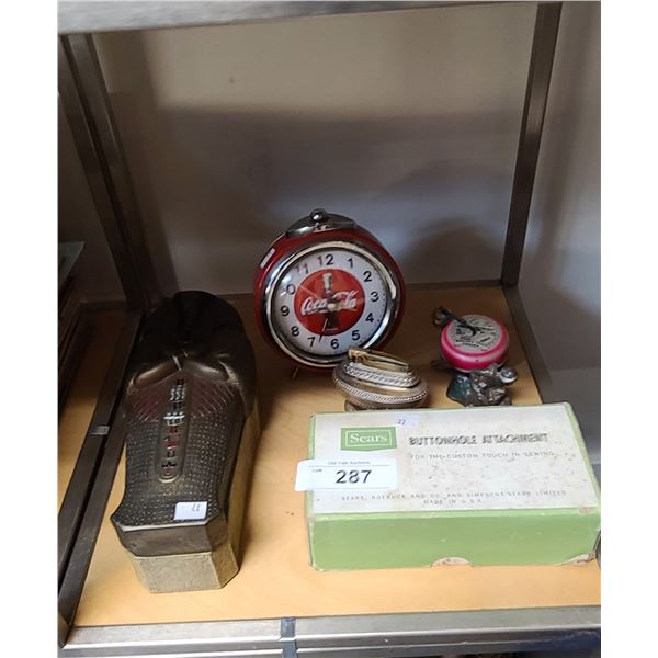 COCA-COLA CLOCK, TABLE LIGHTER ETC