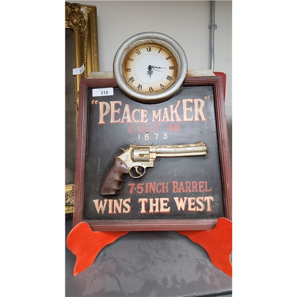 COLT 45 PEACEMAKER WOOD WALL CLOCK