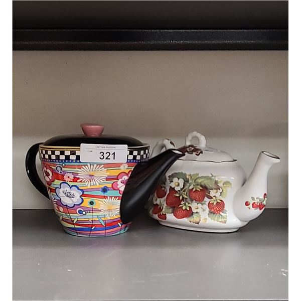 INCLUDING ROSEVILLE BOOKENDS (ONE HAS A CHIP), ANTIQUE HOT CHOC POT, ETC