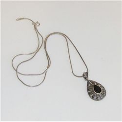Marcasite Sterling Silver Onyx Inlay Pendant Necklace