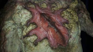 Falling Skies" TV. Made by MastersFX. Skitterized creature suit worn by actress. Foam latex with zipper in back. Has cool silicon alien embedded in the chest.