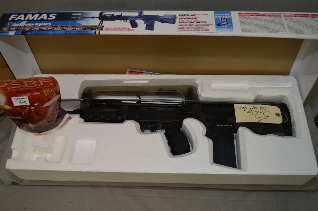 FAMAS Air Soft Gun .6 MM Cal [ appears as new in orig pkg, w/ paper, pellets, etc ] NO PAL REQ USE W/CARE Cabella's Retail Price Tag $ 288.73