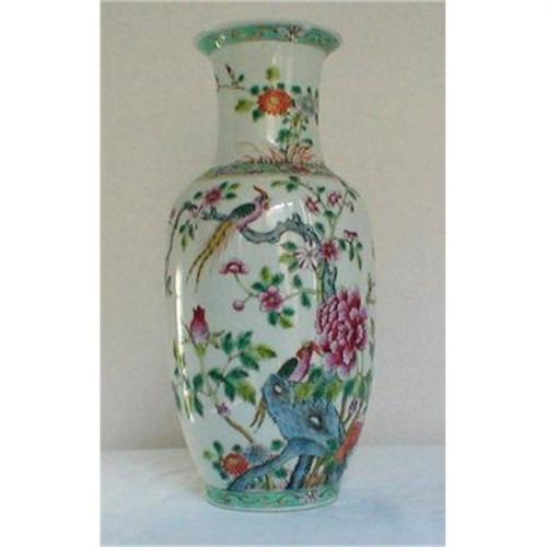 Famille Rose Chinese export vase, bears Qianlong mark, fine eggshell porcelain, wonderful palette, exquisite renderings of florals and birds, appears to be of the period,but Guangzu. ADDITIONAL PHOTOS AVAILABLE