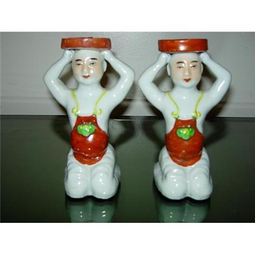 Unusual to find a pair of Joss stick holders, and these boys are totally wonderful.
