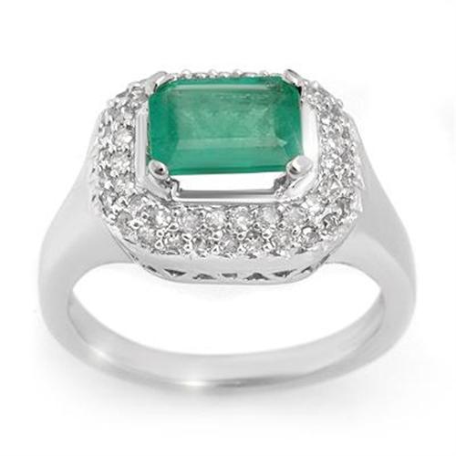 in this gorgeous ring. It showcases a emerald-cut emerald gemstone, prong set in white gold and framed with bead-set diamonds."<BR><BR>As the birth stone of May, emerald is believed
