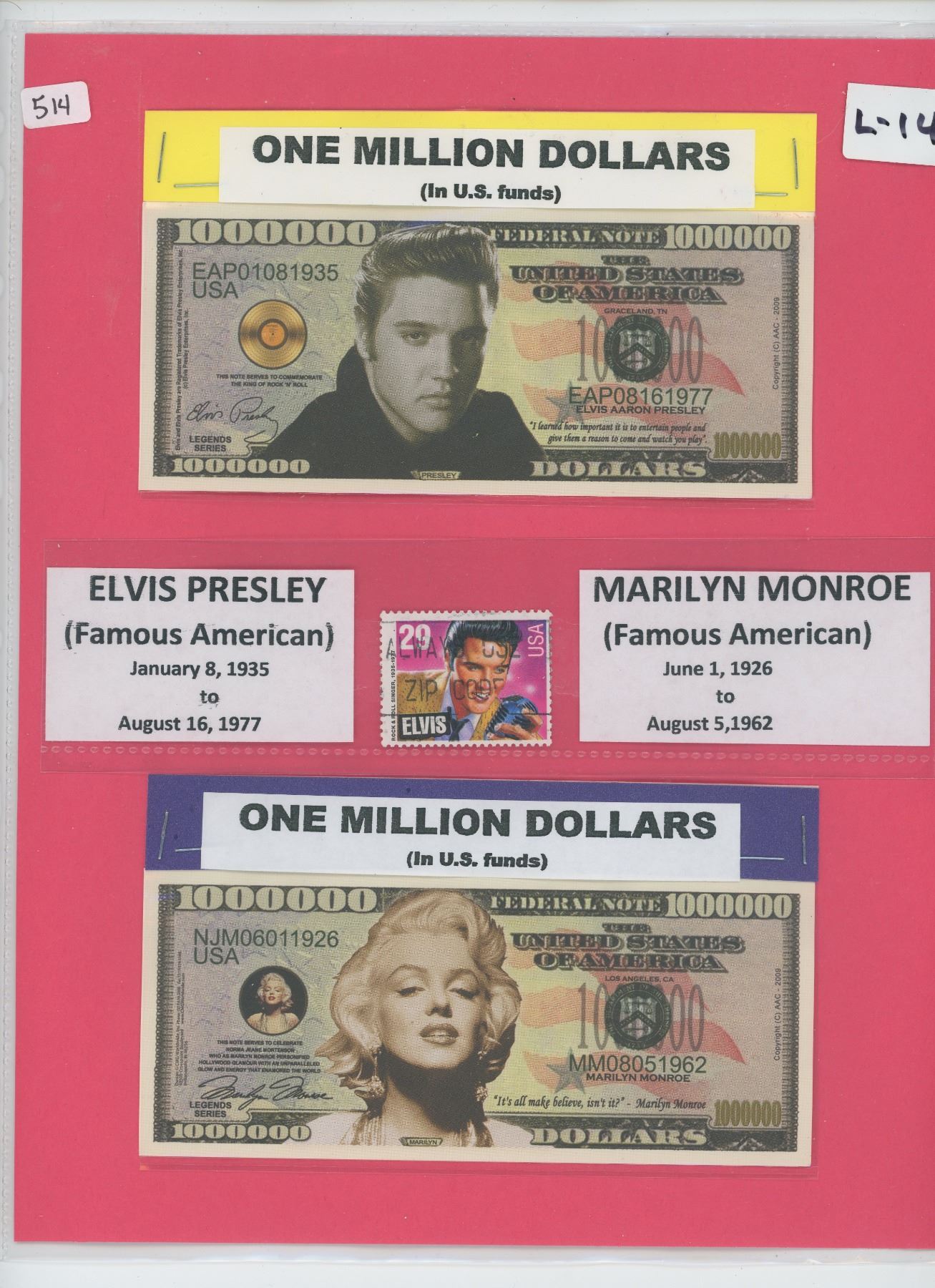 FAMOUS AMERICANS- ELVIS PRESLEY AND MARILYN MONROE ON MILLION DOLLAR BILLS