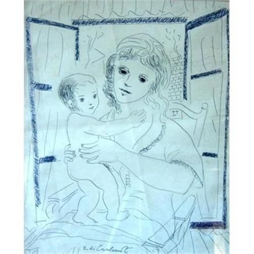 This is a magnificent artwork (drawing) attributed to Emiliano Di Cavalcanti showing the image of a womam with her son in the lap.