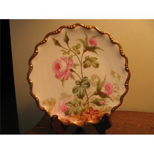 PINK ROSES PLATE BY FAMOUS LIMOGES STUDIO ARTIST FROM 1891-1914 IN EXCELLENT CONDITION!</em></td>