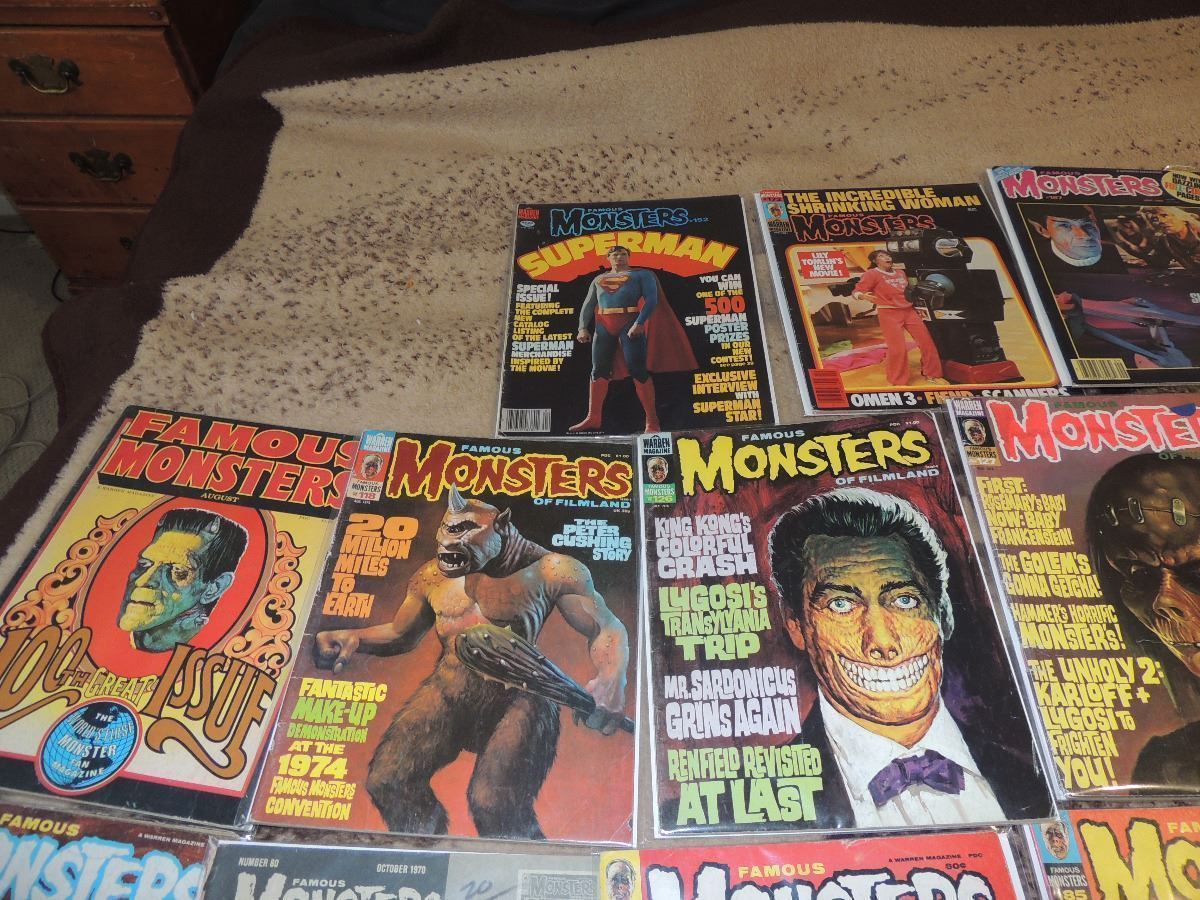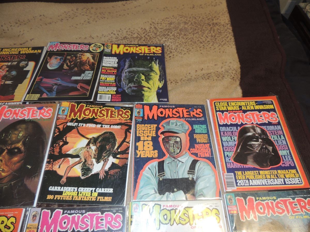This is a huge lot of 25 FAMOUS MONSTERS MAGAZINES ranging from the early 60's to the 80's. Nice starter collection or resale lot.