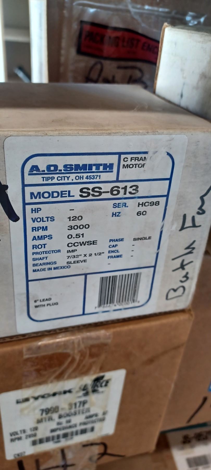 FAN MOTOR SS-613 A.O SMITH QTY 2