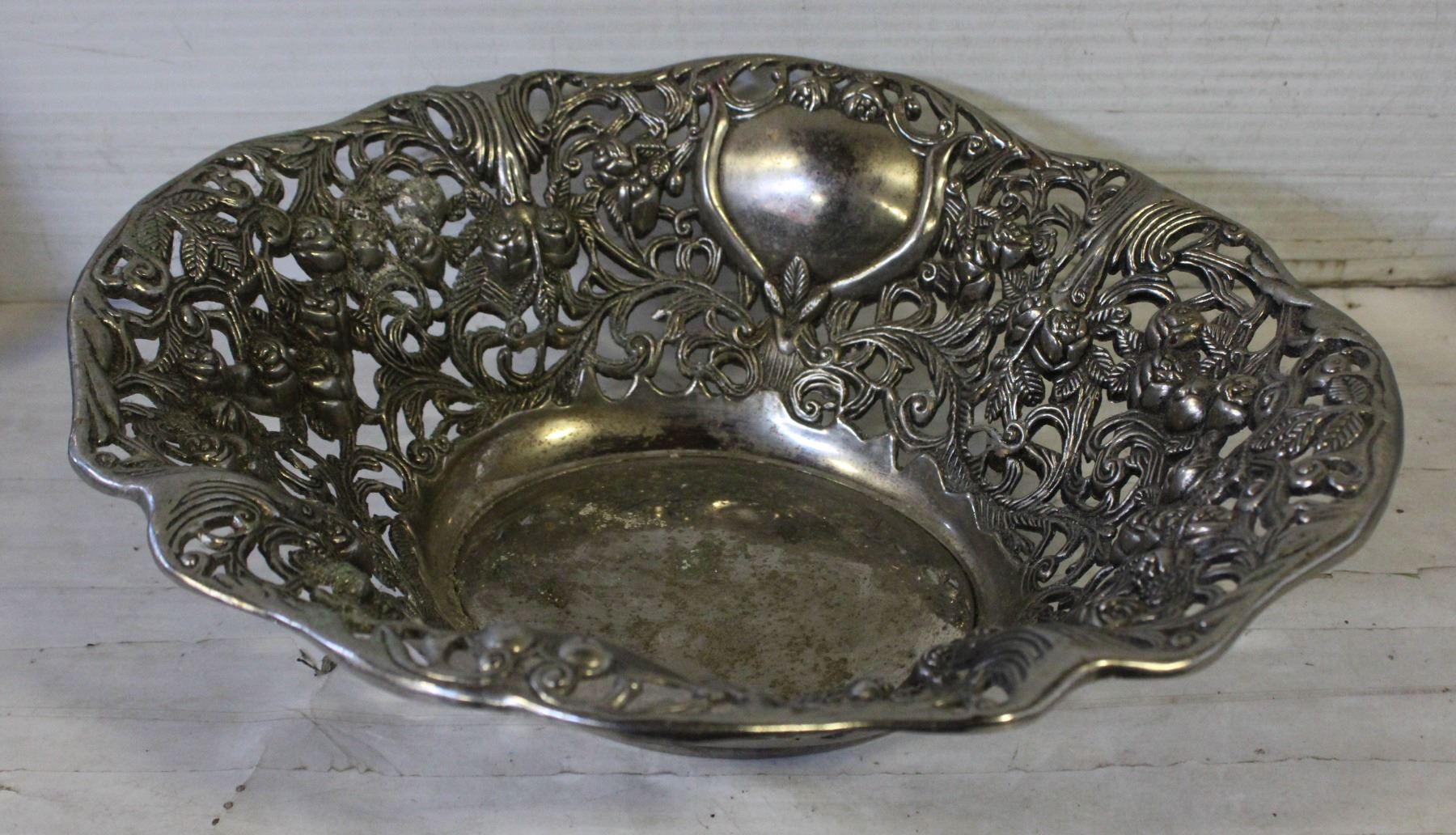 FANCY DECORATED E.P. ZINC DISH.