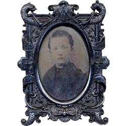 Metal plate on back is hinged at the top. Elaborate design is flawless.