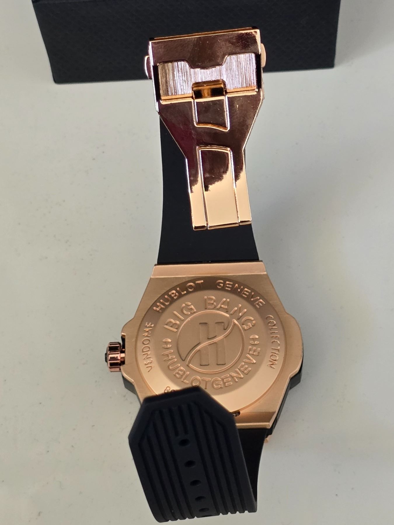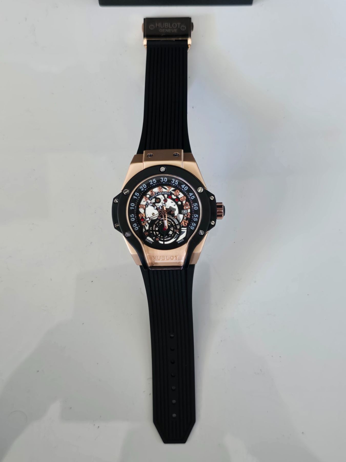 FANCY QUARTZ HUBLOT “BIG BANG” WATCH REPLICA, WITH FLEX STRAP. BRAND NEW IN BOX