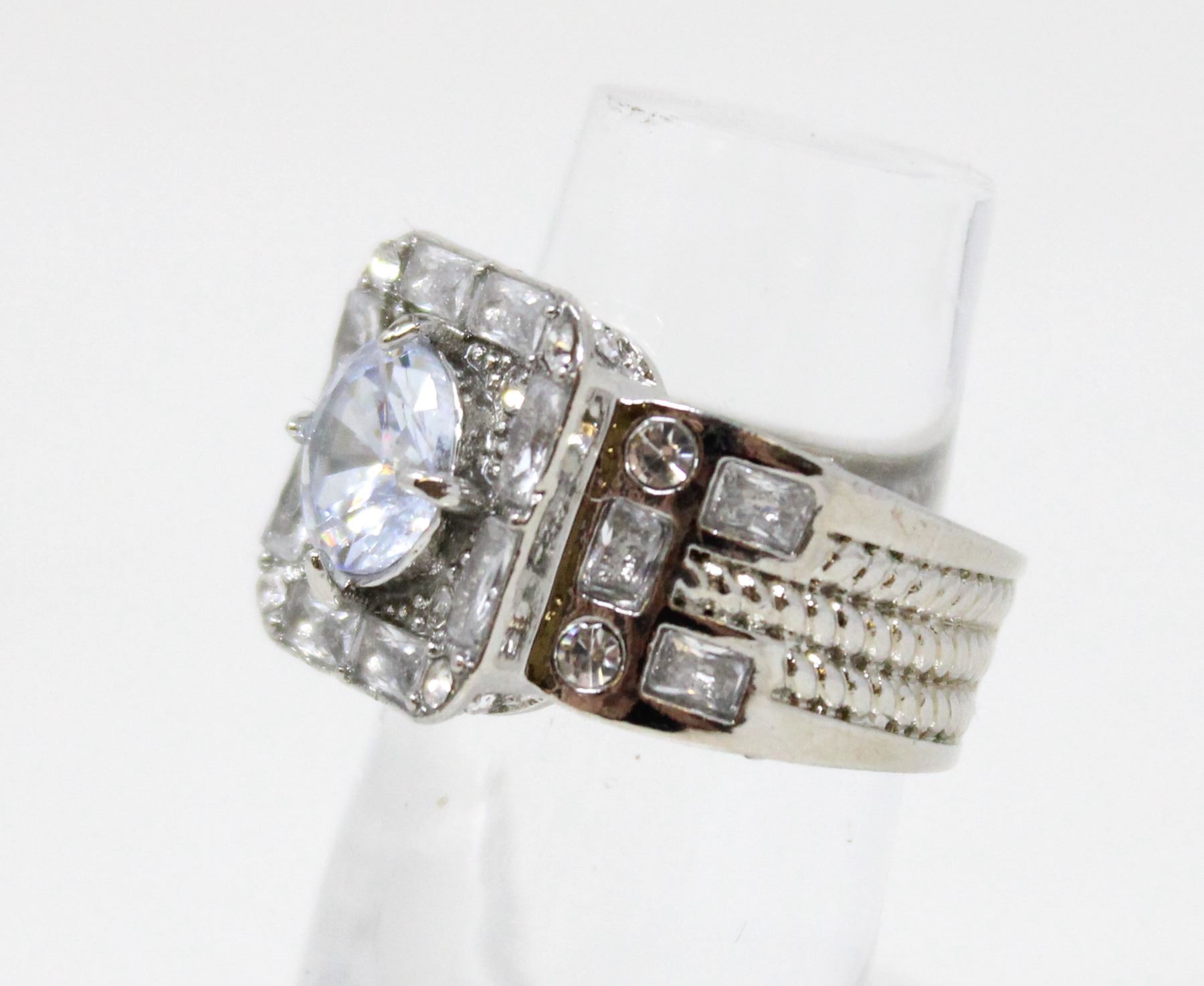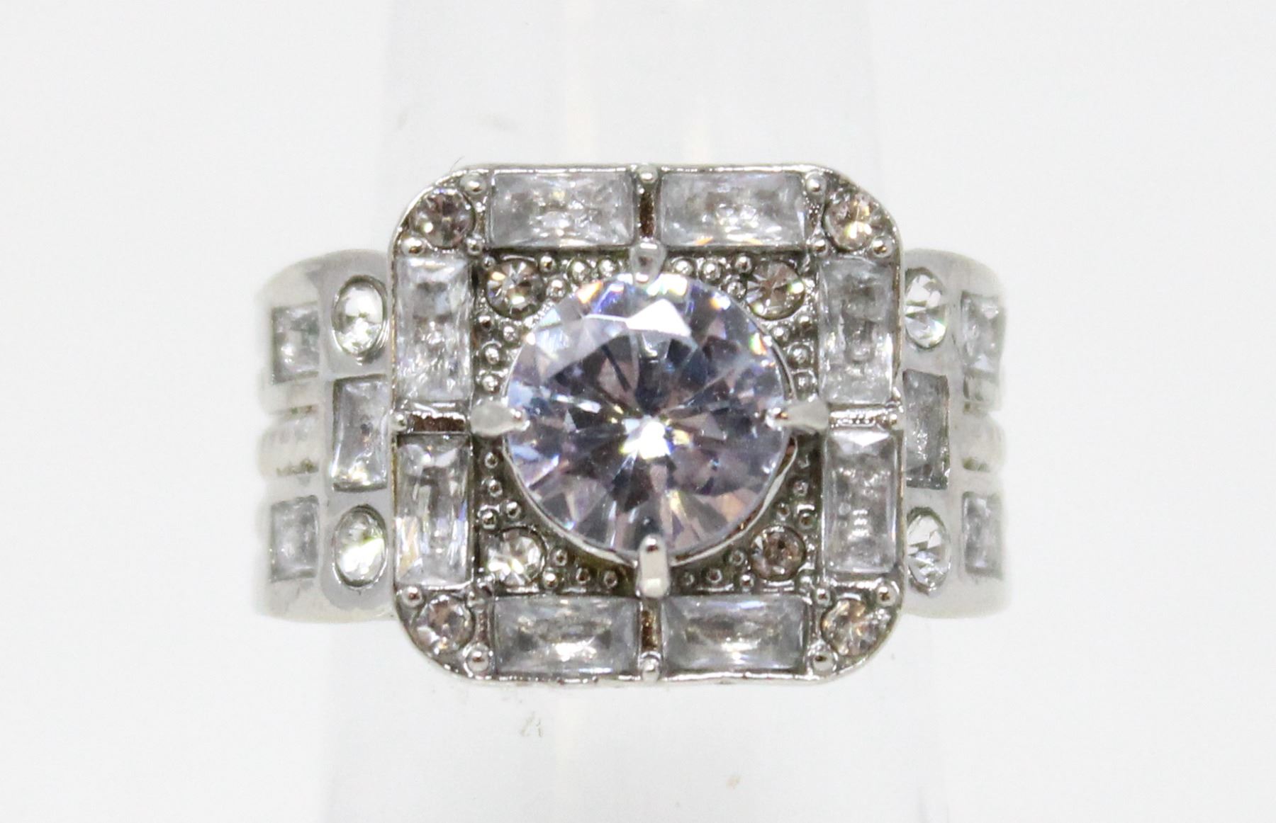 FANCY SILVERPLATE CUBIC ZIRCONIA DIAMOND RING, NEW