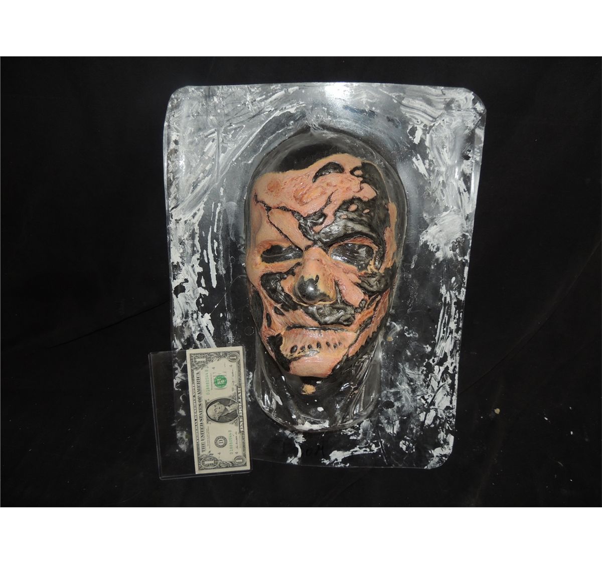This is a painted but unused complete DR DOOM Battle Damaged Face appliance from FANTASTIC 4 on a vacuform life bust of the actor.