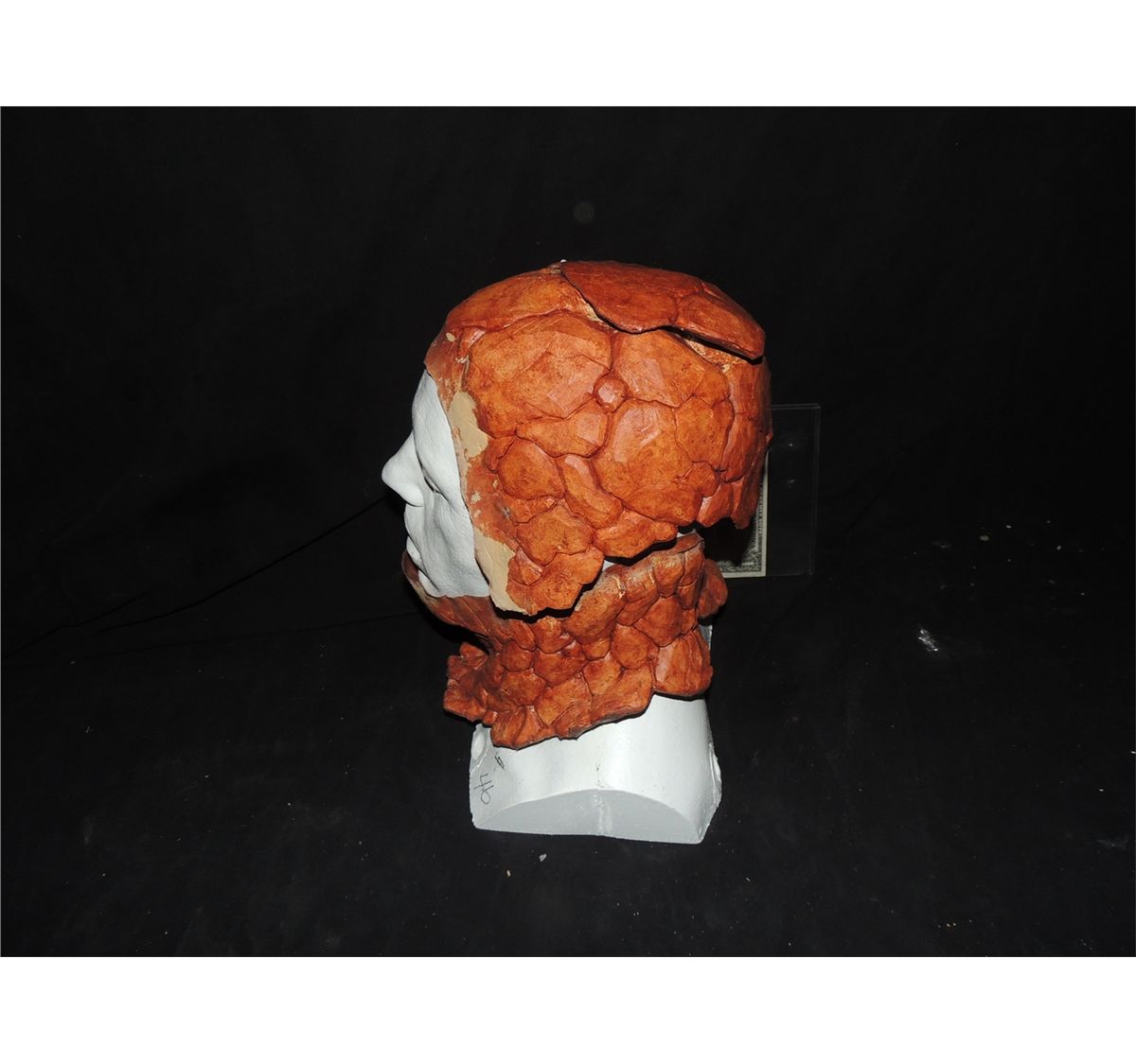 This is a Screen Used Hero Thing neck, cowl, and skull cap on a bust from FANTASTIC 4.