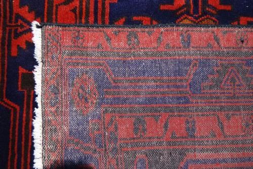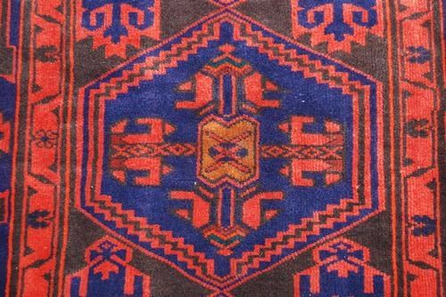 FANTASTIC HAND MADE PERSIAN KURDISH KOLYAEE RUG, SIZE 4.3 X 6.11 FEET, MADE OF FINE QUALITY BABY LAMB'S WOOL PILE ON COTTON FOUNDATION, ALL NATURAL VEGETABLE DYE, THIS BEAUTIFUL RUG INCORPORATES A LOVELY SET OF TRIBAL MOTIFS ON A RED AND NAVY BLUE BACKGROUND, WITH A CENTER ROW OF MEDALLIONS AND AN INTRICATELY DONE MULTI LAYERED BORDER. HAND WOVEN IN KOLYAEE, IRAN.