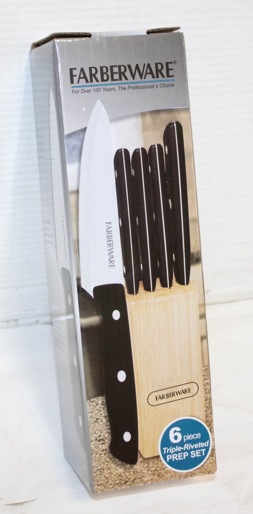 FARBERWARE 6PIECE TRIPLE RIVETED KNIFE & BLOCK SET