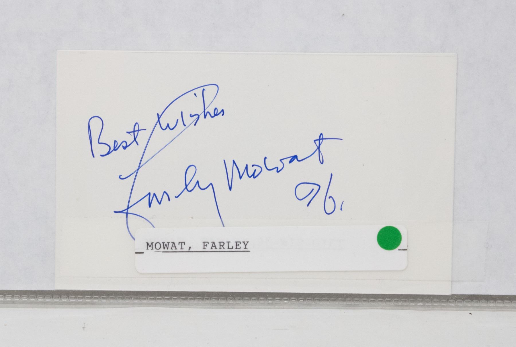 FARLEY MOWAT SIGNED CARD