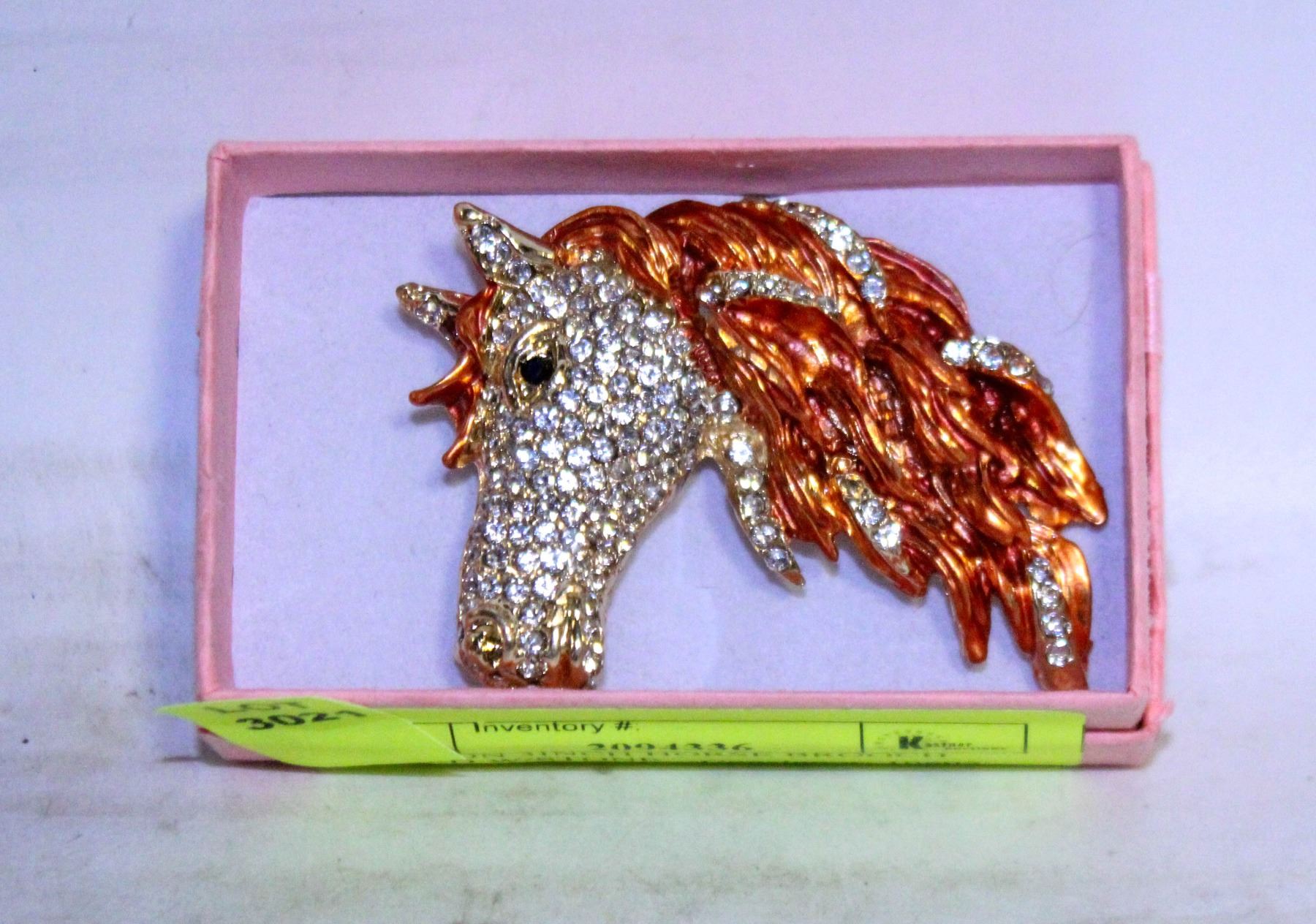 FASHION 3INCH HORSE BROOCH FILLED W/STONE