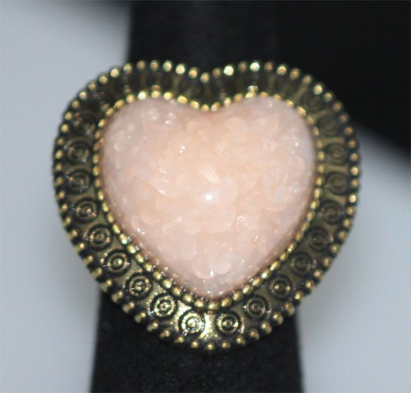 FASHION JEWELRY BRASS RING; HEART SHAPED; SYNTHETIC LIG **|**|** FASHION JEWELRY BRASS RING; HEART SHAPED; SYNTHETIC LIGHT PINK STONE ; MSRP: $0