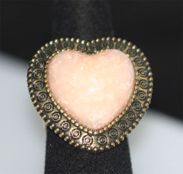 FASHION JEWELRY BRASS RING; HEART SHAPED; SYNTHETIC LIG **|**|** FASHION JEWELRY BRASS RING; HEART SHAPED; SYNTHETIC LIGHT PINK STONE ; MSRP: $0