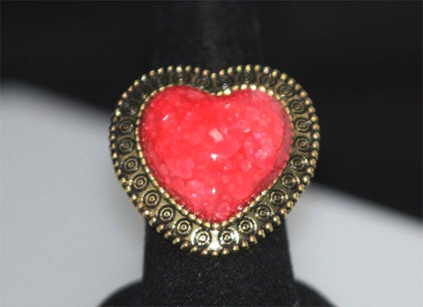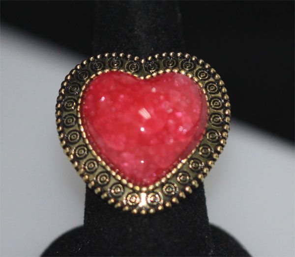 FASHION JEWELRY BRASS RING; HEART SHAPED; SYNTHETIC PIN **|**|** FASHION JEWELRY BRASS RING; HEART SHAPED; SYNTHETIC PINK STONE ; MSRP: $0