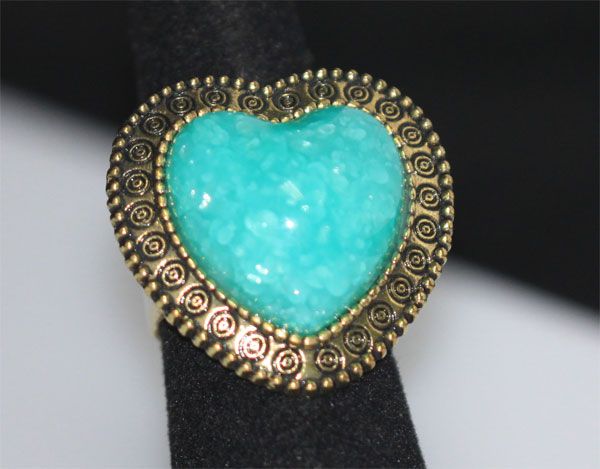 FASHION JEWELRY BRASS RING; HEART SHAPED; SYNTHETIC TUR **|**|** FASHION JEWELRY BRASS RING; HEART SHAPED; SYNTHETIC TURQUOISE STONE ; MSRP: $0