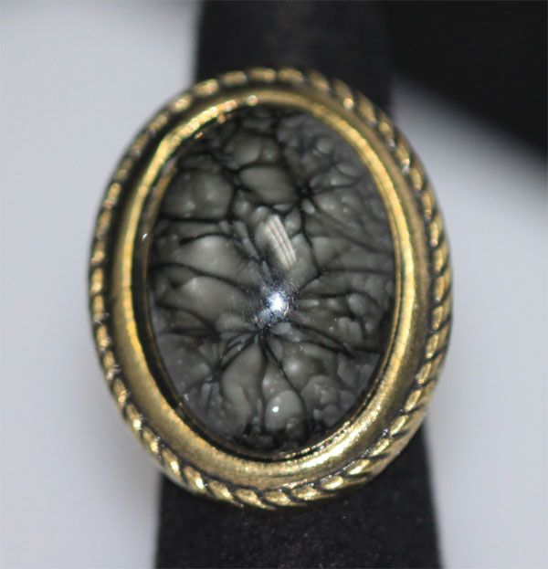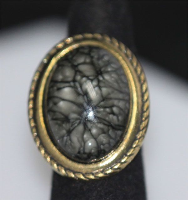 FASHION JEWELRY BRASS RING; SYNTHETIC BLACK STONE **|**|** FASHION JEWELRY BRASS RING; OVAL SHAPED; SYNTHETIC BLACK STONE ; MSRP: $0