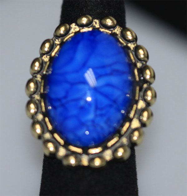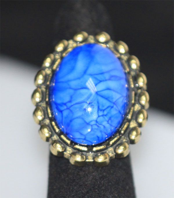 FASHION JEWELRY BRASS RING; SYNTHETIC BLUE STONE **|**|** FASHION JEWELRY BRASS RING; OVAL SHAPED; FRAYED EDGES; SYNTHETIC BLUE STONE ; MSRP: $0