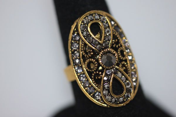 FASHION JEWELRY BRASS RING; SYNTHETIC CZ **|**|** FASHION JEWELRY BRASS RING; OVAL SHAPED; SYNTHETIC WHITE CZ; ADJUSTABLE SIZE ; MSRP: $0