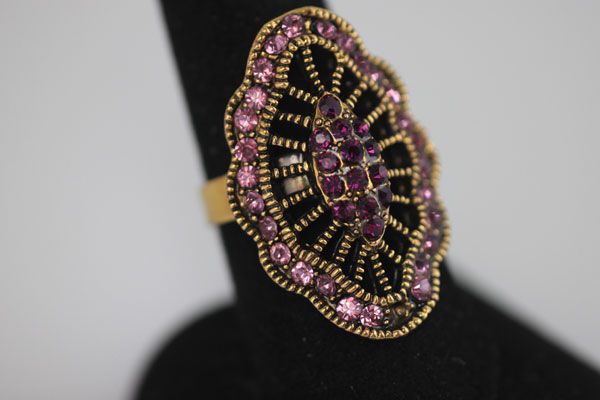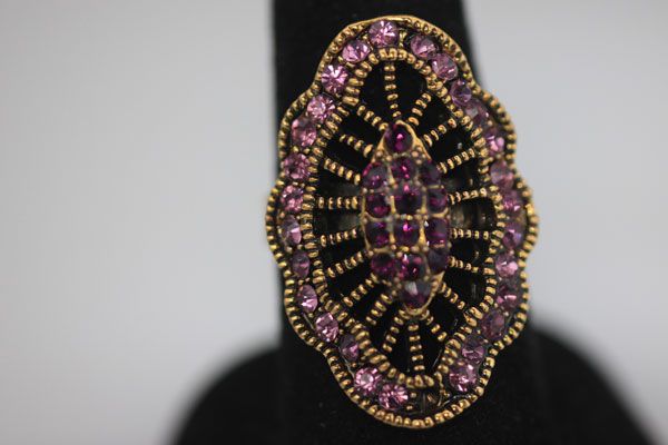 FASHION JEWELRY BRASS RING; SYNTHETIC CZ **|**|** FASHION JEWELRY BRASS RING; EYE SHAPED; SYNTHETIC PURPLE CZ; ADJUSTABLE SIZE ; MSRP: $0