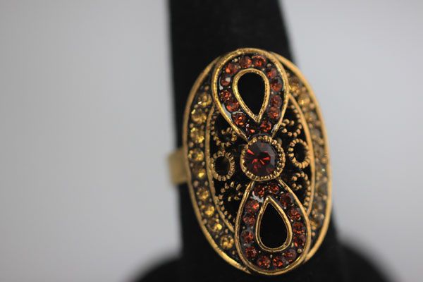 FASHION JEWELRY BRASS RING; SYNTHETIC CZ **|**|** FASHION JEWELRY BRASS RING; OVAL SHAPED; SYNTHETIC CRIMSON CZ; ADJUSTABLE SIZE ; MSRP: $0