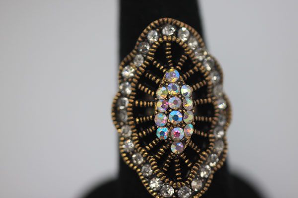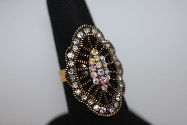 FASHION JEWELRY BRASS RING; SYNTHETIC CZ **|**|** FASHION JEWELRY BRASS RING; EYE SHAPED; SYNTHETIC WHITE CZ; ADJUSTABLE SIZE ; MSRP: $0