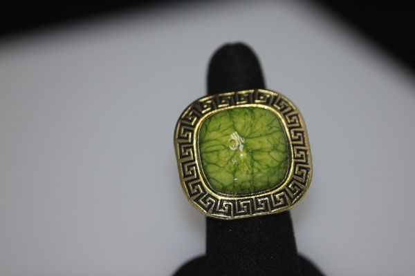 FASHION JEWELRY BRASS RING; SYNTHETIC GREEN STONE **|**|** FASHION JEWELRY BRASS RING; SQUARE SHAPED; SYNTHETIC GREEN STONE ; MSRP: $0