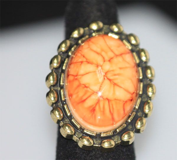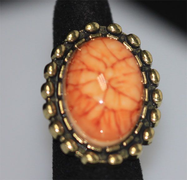 FASHION JEWELRY BRASS RING; SYNTHETIC LIGHT ORANGE STON **|**|** FASHION JEWELRY BRASS RING; OVAL SHAPED; FRAYED EDGES; SYNTHETIC LIGHT ORANGE STONE ; MSRP: $0