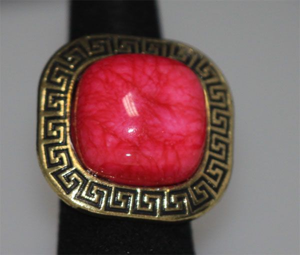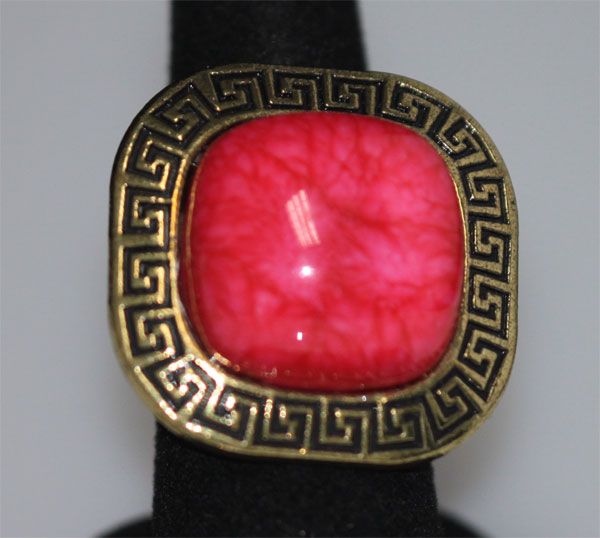 FASHION JEWELRY BRASS RING; SYNTHETIC PINK STONE **|**|** FASHION JEWELRY BRASS RING; SQUARE SHAPED; SYNTHETIC PINK STONE ; MSRP: $0