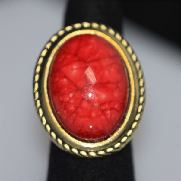 FASHION JEWELRY BRASS RING; SYNTHETIC RED STONE **|**|** FASHION JEWELRY BRASS RING; OVAL SHAPED; SYNTHETIC RED STONE ; MSRP: $0