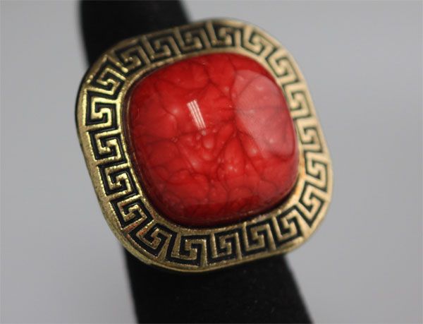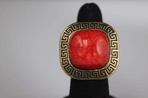 FASHION JEWELRY BRASS RING; SYNTHETIC RED STONE **|**|** FASHION JEWELRY BRASS RING; SQUARE SHAPED; SYNTHETIC RED STONE ; MSRP: $0