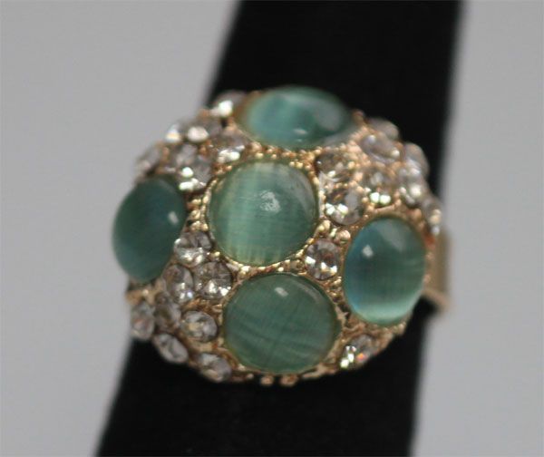 FASHION JEWELRY CLEAR BLUE SYNTHETIC STONE AND CZ BRASS **|**|** FASHION JEWELRY CLEAR BLUE SYNTHETIC STONE AND CZ BRASS RING ADJUSTABLE RING SIZE ; MSRP: $0