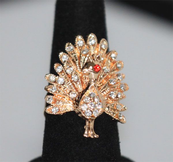 FASHION JEWELRY CZ AND RED CZ PEACOCK SHAPED BRASS RING **|**|** FASHION JEWELRY CZ AND RED CZ PEACOCK SHAPED BRASS RING ADJUSTABLE RING SIZE ; MSRP: $0