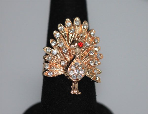 FASHION JEWELRY CZ AND RED CZ PEACOCK SHAPED BRASS RING **|**|** FASHION JEWELRY CZ AND RED CZ PEACOCK SHAPED BRASS RING ADJUSTABLE RING SIZE ; MSRP: $0