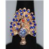 FASHION JEWELRY MULTI-COLORED CZ PEACOCK SHAPED BRASS R **|**|** FASHION JEWELRY BLUE , LIGHT BLUE, AND RED CZ PEACOCK SHAPED BRASS RING ADJUSTABLE RING SIZE ; MSRP: $0