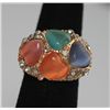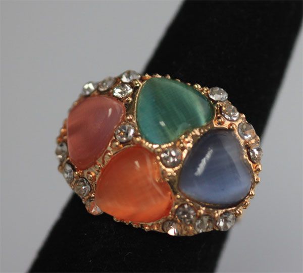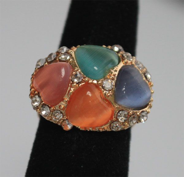 FASHION JEWELRY MULTI-COLORED HEART SHAPED STONE AND CZ **|**|** FASHION JEWELRY MULTI-COLORED HEART SHAPED STONE AND CZ BRASS RING ADJUSTABLE RING SIZE ; MSRP: $0
