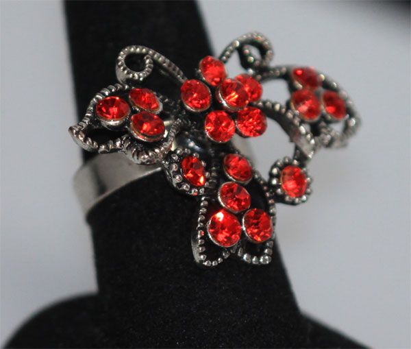 FASHION JEWELRY RED CZ BUTTERFLY SHAPED BRASS RING **|**|** FASHION JEWELRY RED CZ BUTTERFLY SHAPED BRASS RING ADJUSTABLE RING SIZE ; MSRP: $0