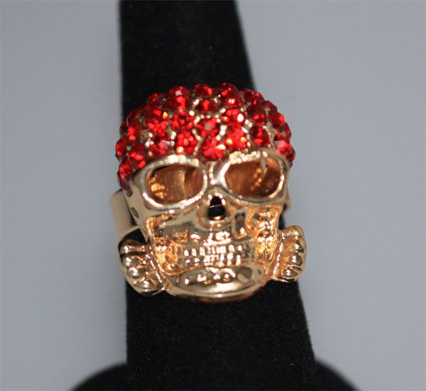 FASHION JEWELRY RED CZ SKULL SHAPED BRASS RING **|**|** FASHION JEWELRY RED CZ SKULL SHAPED BRASS RING ADJUSTABLE RING SIZE ; MSRP: $0