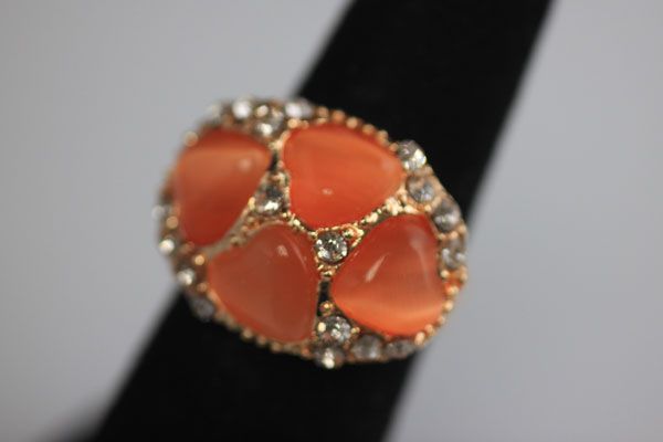 FASHION JEWELRY SYNTHETIC LIGHT ORANGE HEART SHAPED BRA **|**|** FASHION JEWELRY SYNTHETIC LIGHT ORANGE HEART SHAPED BRASS RING ADJUSTABLE RING SIZE ; MSRP: $0