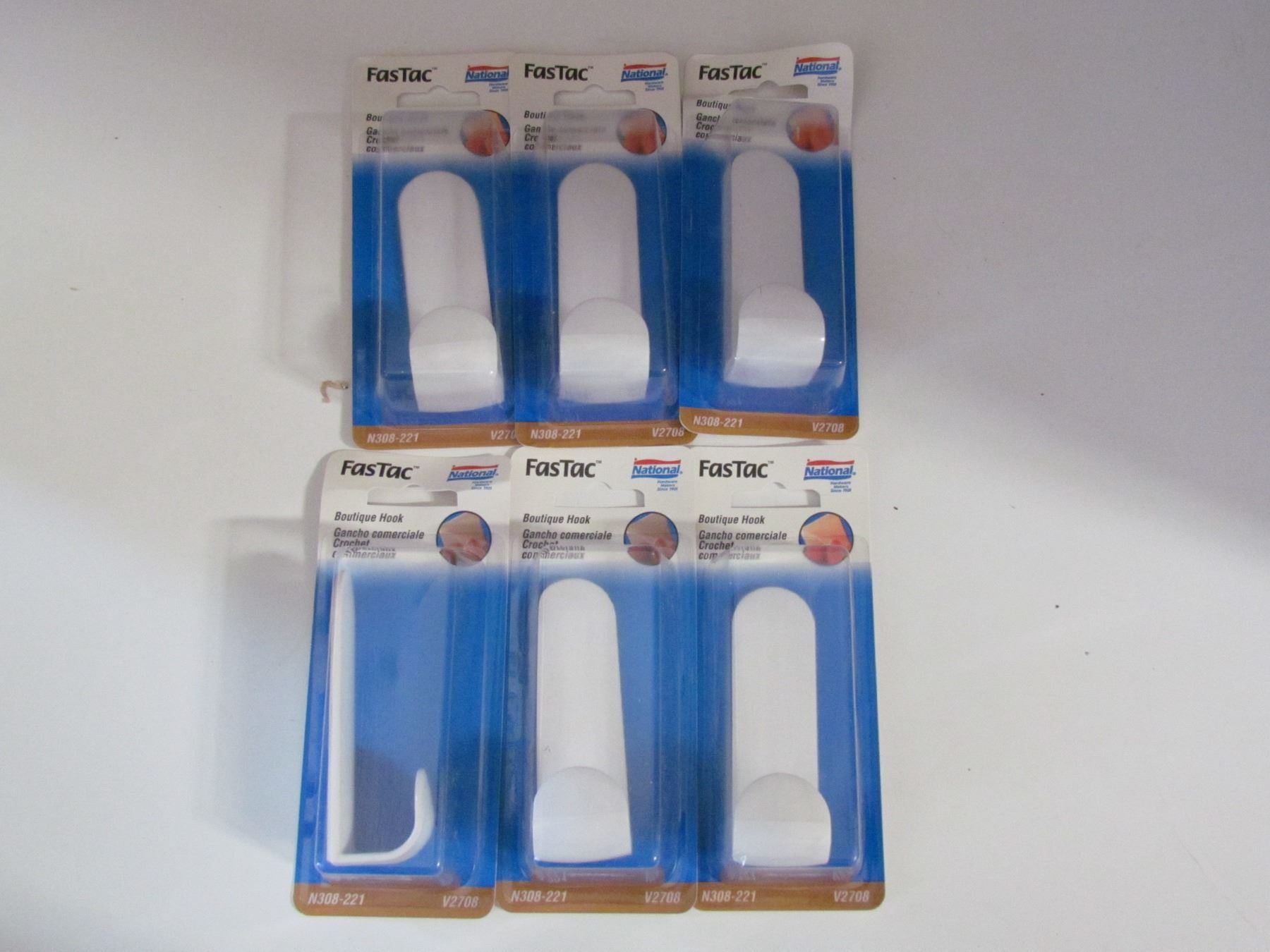 6 QTY, FASTAC ADHESIVE HOOKS