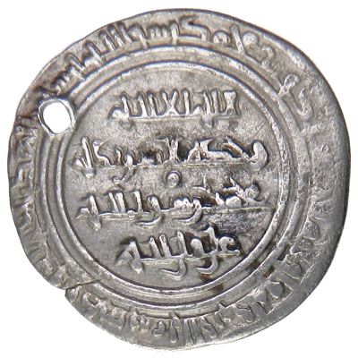 FATIMID: al-Hakim, 996-1021, AR dirham (1.15g), Misr, AH406, A-711, Nicol-1120, called half dirham by Nicol, pierced, lovely strike with no weakness, VF, R.